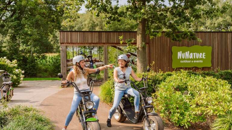 Wil je boogschieten leren? Dat kan in de outdoor arena. Je kunt er ook kanovaren over de Vecht, bosgolf spelen en zelfs een elektrische e-chopper huren om de omgeving te verkennen. Deze stille, milieuvriendelijke scooters gaan tot 30 km per uur en brengen je via prachtige routes naar de mooiste plekjes van het Vechtdal. Je hebt alleen een geldig bromfietscertificaat of rijbewijs nodig.