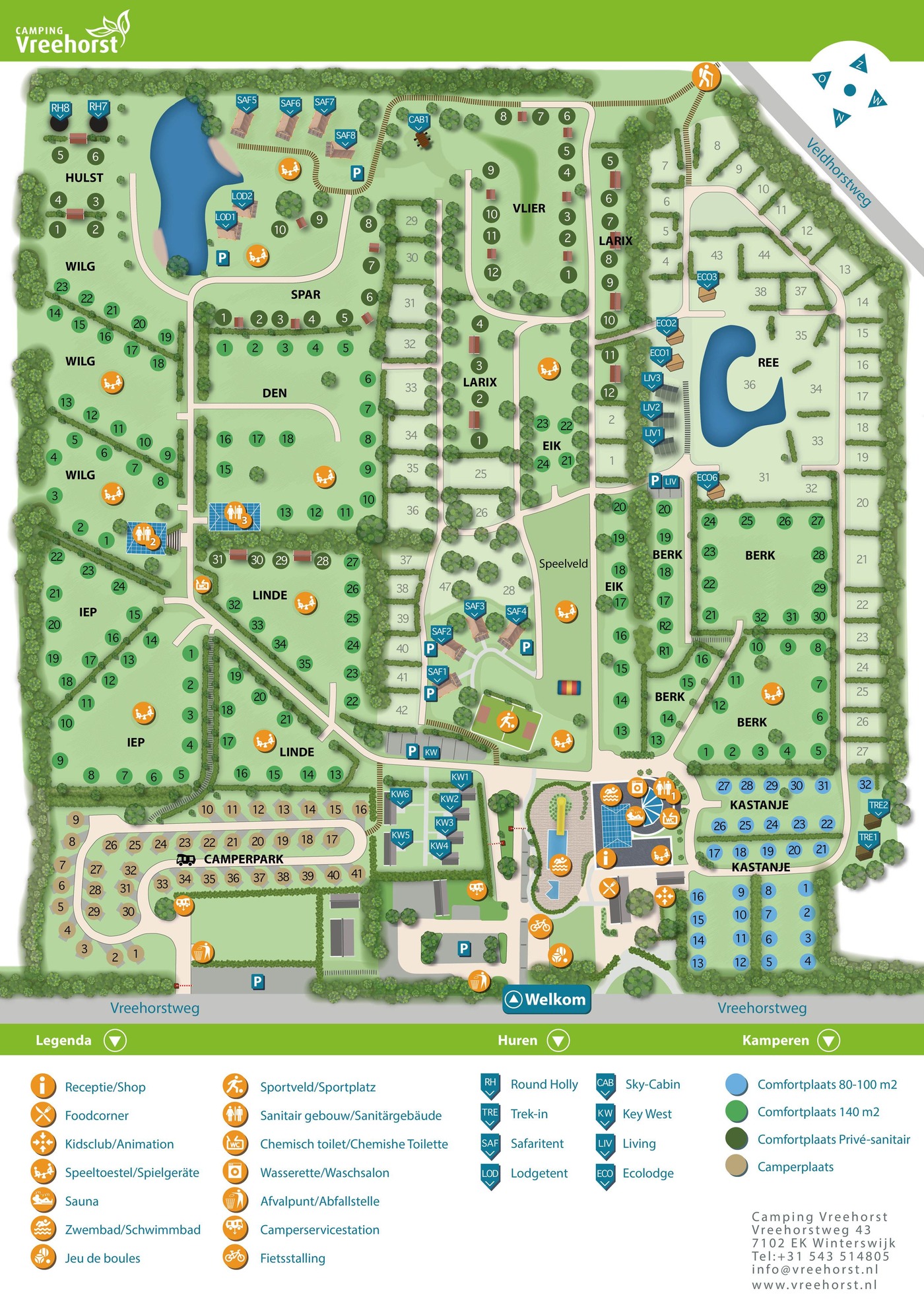 Camping Vreehorst is een kleinschalige 4,5 sterren camping midden in het prachtige coulisselandschap van Winterswijk. Hier geniet je het hele jaar door van het binnenzwembad. Verder kan je lekker ontspannen aan de recreatieplas, én je bent zo de natuur in met natuurgebieden als de Bekendelle en het Korenburgerveen op loopafstand. Verder biedt het park o.a. een visvijver, recreatieteam, sauna, pumptrack, speeltuinen en nog veel meer!