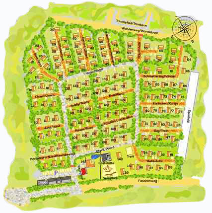 Het park biedt verschillende types vrijstaande bungalows, elk met een eigen tuin, overdekt terras en parkeerplek direct bij je huisje. De accommodaties zijn uitgerust met een complete open keuken (inclusief vaatwasser, combimagnetron en koffiezetapparaat), badkamer met douche en een gezellige woonkamer met tv die zowel Duitse als Nederlandse zenders ontvangt. WiFi is gratis beschikbaar, al werkt de ontvangst niet overal even goed in het park. Je kunt kiezen uit verschillende varianten. De Type 4p bungalows zijn geschikt voor vier personen en hebben twee slaapkamers met elk een tweepersoonsbed van 1,40 meter breed. Voor gezinnen met kinderen zijn er de Type 5p (voor 2 volwassenen en 3 kinderen, met een stapelbed erbij) en Type 6p bungalows (voor 2 volwassenen en 4 kinderen, met twee stapelbedden). Iets ruimer zijn de Type 4 Plus en Comfort Plus bungalows, die elk drie slaapkamers hebben en plaats bieden aan 4 volwassenen en 2 kinderen – ideaal als je met vrienden of familie komt.