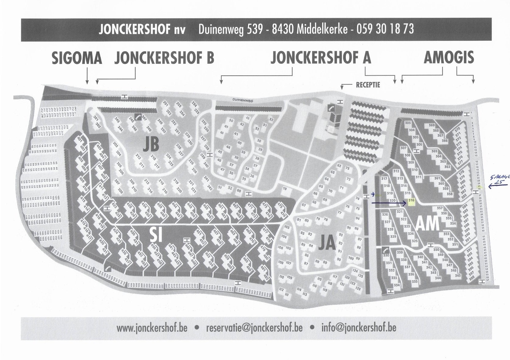 Jonckershof ligt aan de Duinenweg 539 in Middelkerke, in de provincie West-Vlaanderen, België. Het vakantiepark bevindt zich op slechts 300 meter van de Noordzee en het centrum van Westende-Bad. De ligging is ideaal voor strandliefhebbers, want je loopt binnen enkele minuten naar het brede zandstrand van Westende. Het autovrije park ligt midden in het groen en wordt omringd door de karakteristieke duinen van de Belgische kust. Vanuit Jonckershof bereik je gemakkelijk andere kustplaatsen: Oostende en Koksijde-Bad liggen beide op ongeveer 30 minuten rijden. De centrale ligging maakt het park tot een perfecte uitvalsbasis om de hele Belgische kust te verkennen, terwijl je direct toegang hebt tot het strand en de duingebieden van Middelkerke.