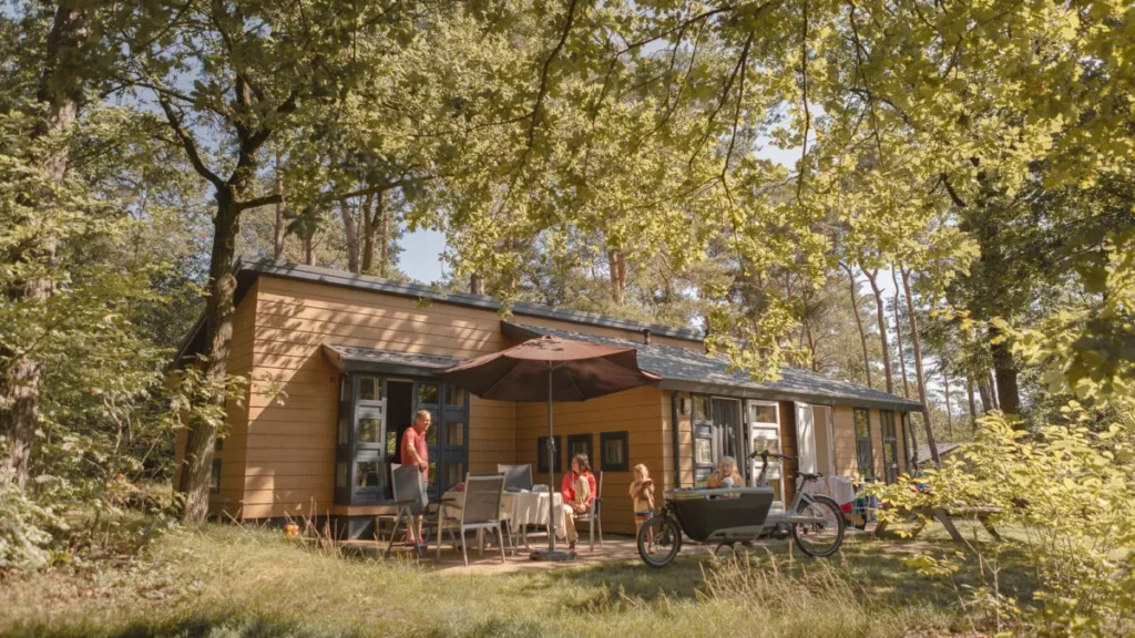De Bosvilla ligt op 800 meter afstand van de camping in het bos en biedt plek aan 5 personen. Hier geniet je van ultieme rust en privacy in een knusse woonkamer met ruime open keuken, en vanuit de woonkamer stap je direct de tuin in. Natuurlijk maak je hier gewoon gebruik van alle voorzieningen van de camping.