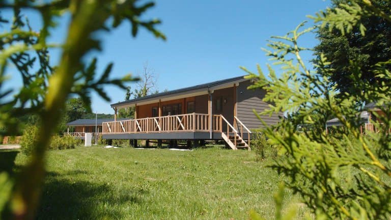 Moulin de Hotton is een kleinschalig vakantiepark in de Belgische Ardennen. De moderne chalets zijn gebouwd op palen en zien er gloednieuw uit, met ruime veranda’s die voor een groot deel overdekt zijn. Wat ik zo gaaf vind: elke chalet heeft een comfortabele loungeset én een eettafel met stoelen op de veranda, perfect om na een actieve dag in de Ardennen heerlijk buiten te ontspannen. De chalets zijn van alle gemakken voorzien – denk aan een complete keuken met vaatwasser, een grote luxe douche, en zelfs horren voor alle ramen zodat je ’s avonds zonder muggen kan ventileren. Je loopt binnen vijf tot vijftien minuten naar het centrum van Hotton waar je een uitstekende bakker, meerdere supermarkten (Carrefour en Delhaize) en diverse restaurants vindt. De Ourthe ligt ook op loopafstand, met een grasveld waar kinderen heerlijk in het water kunnen spelen.