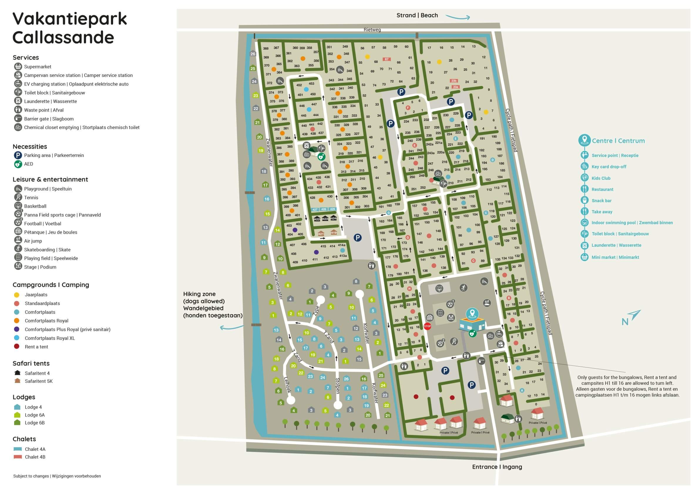 Je kunt vanaf 16.00 uur inchecken (kampeerders al vanaf 13.00 uur), en uitchecken moet voor 10.00 uur – maar de rest van de dag mag je gewoon blijven genieten van alle faciliteiten. Het Service Point helpt je graag bij vragen, en als je buiten openingstijden aankomt, neem dan van tevoren even contact op.