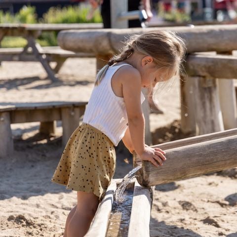 Bij de grote zand- en waterspeeltuin naast Restaurant De Schoppe bouw je met je kinderen de mooiste zandkastelen en spelen ze bij de waterpomp waar het water via houten balken naar beneden stroomt. Er is ook een groot groen springkussen en diverse speeltoestellen verspreid over het park.