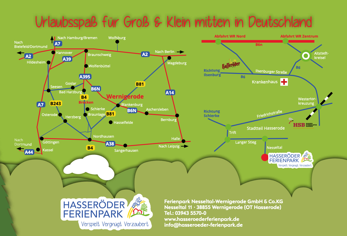 Hasseröder Ferienpark ligt in het Duitse Wernigerode, midden in de prachtige Harz-regio, en is een topbestemming voor gezinnen. Het park biedt een uitgebreid subtropisch zwemparadijs, een grote indoor speelwereld van 600m², bowlingbanen, een complete “saunawereld” en comfortabele accommodaties voor 4 tot 10 personen.