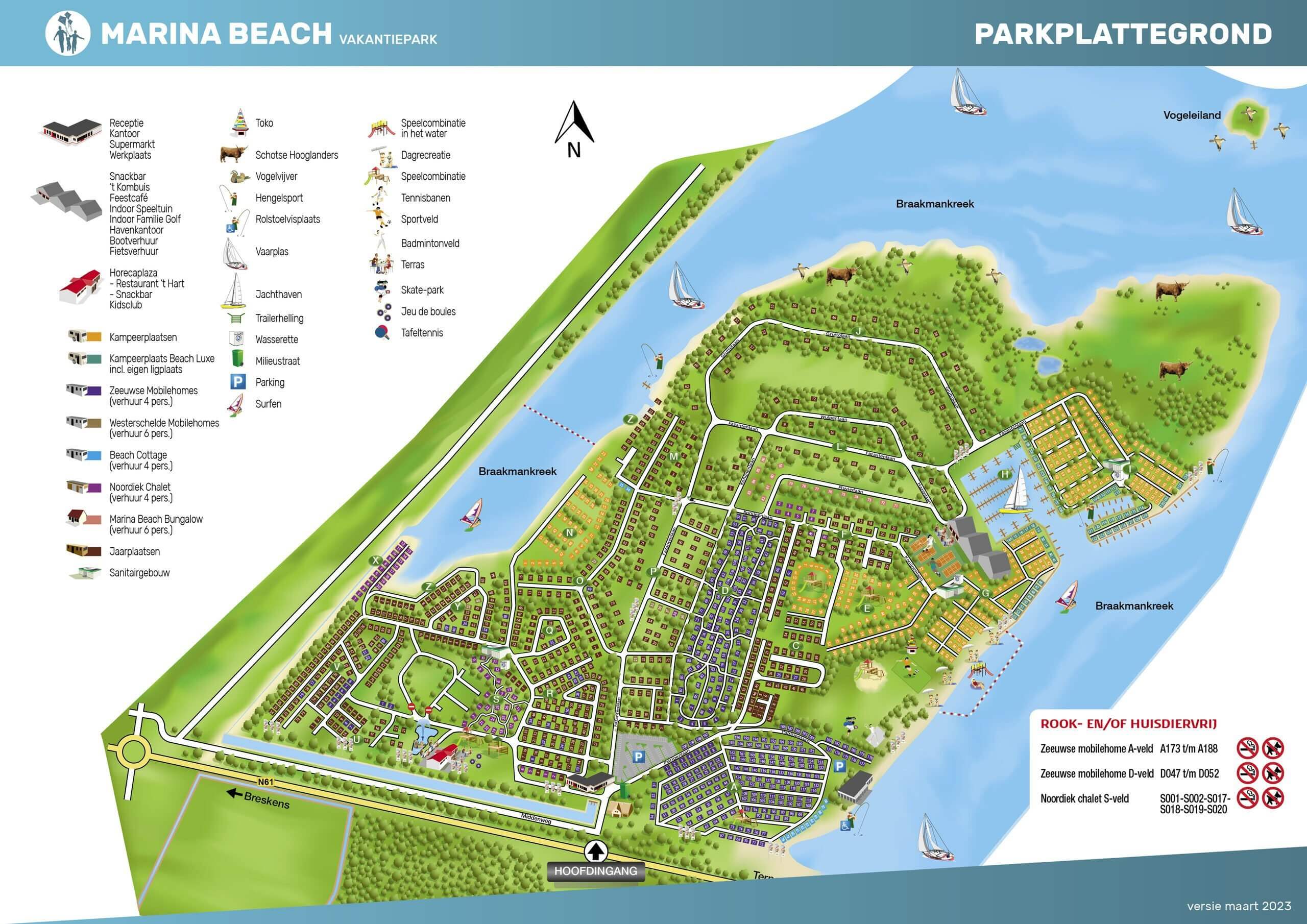 Vakantiepark Marina Beach ligt op het prachtige schiereiland De Braakman, direct aan de Westerschelde, en is een heel fijne bestemming als je van water houdt. Met een eigen jachthaven met 265 ligplaatsen, een strandbad met toffe waterspeeltoestellen en ruim 135 hectare vaarwater voor de deur, zit je hier als watersporter echt goed. Maar ook als je gewoon lekker wilt ontspannen met het gezin, biedt dit park precies wat je zoekt: kampeerplekken aan het water, fijne chalets, mobilehomes en bungalows en genoeg activiteiten voor iedereen.