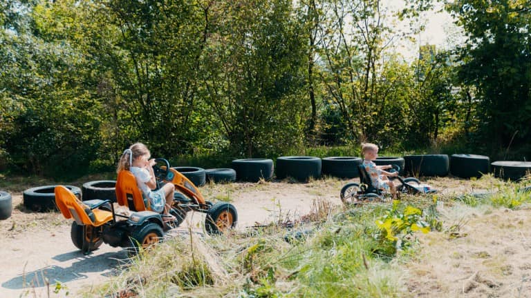 De skelterbaan is ook erg leuk: een parcours met hoogteverschillen, spannende bochten en zelfs een benzinepomp. Je kunt skelters in verschillende maten huren bij de receptie. Verderop op het veld staat de interactieve voetbalmuur, ook wel de Sutu-muur genoemd. Deze muur kan verschillende spelletjes met je spelen – alleen of tegen elkaar.