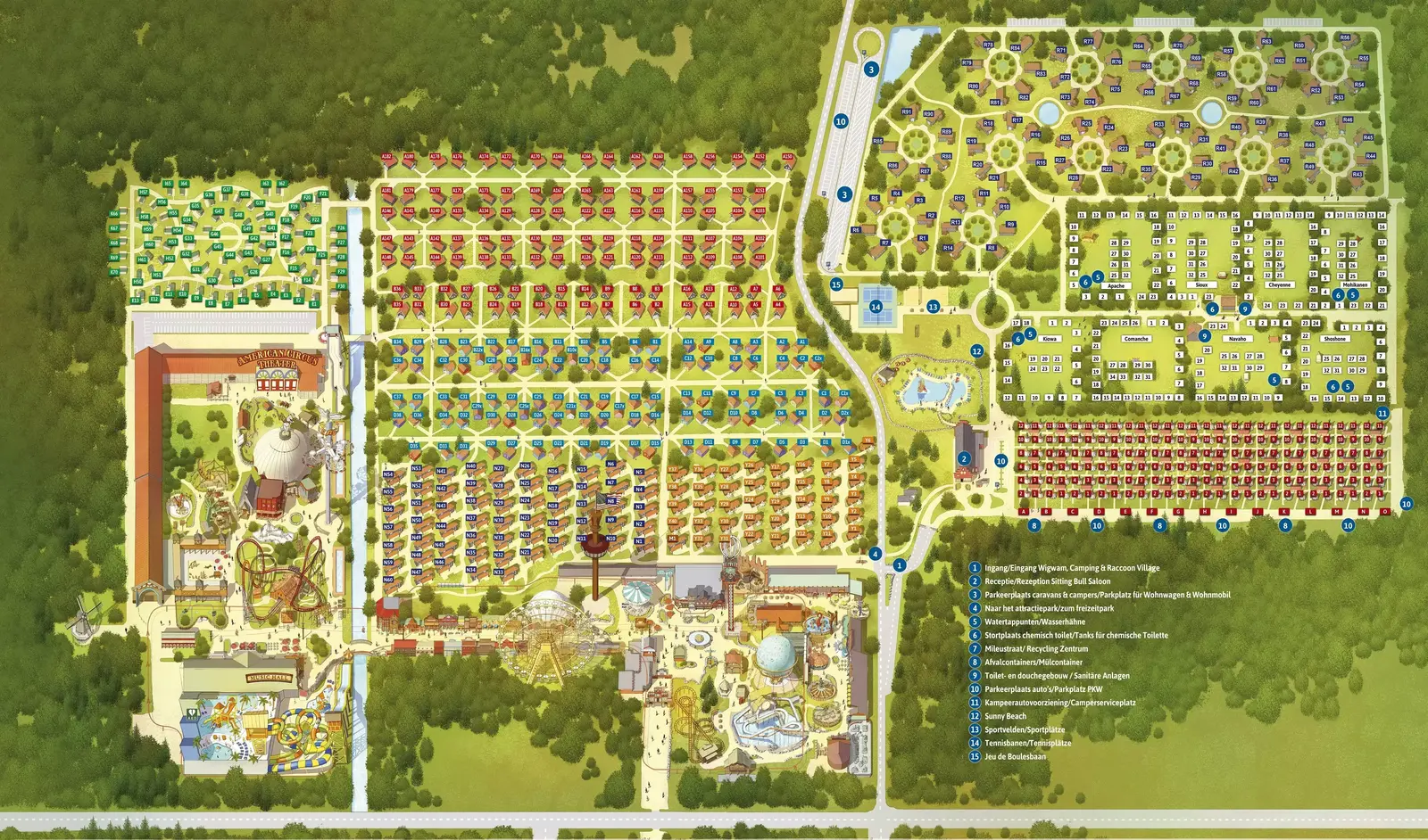 Het park is opgedeeld in twee delen, met daartussen een Wild West straatje waar restaurants en winkeltjes gevestigd zijn. Op straat kom je de leukste karakters tegen: Randy & Rosie en de ondeugende Red Bandits zorgen voor verrassingen en entertainment. Tijdens je bezoek kun je ook genieten van verschillende shows – de Circus show is volgens bezoekers echt de moeite waard. In de avond zijn de attracties gesloten, maar dan start er speciaal familie-entertainmentprogramma voor parkgasten.