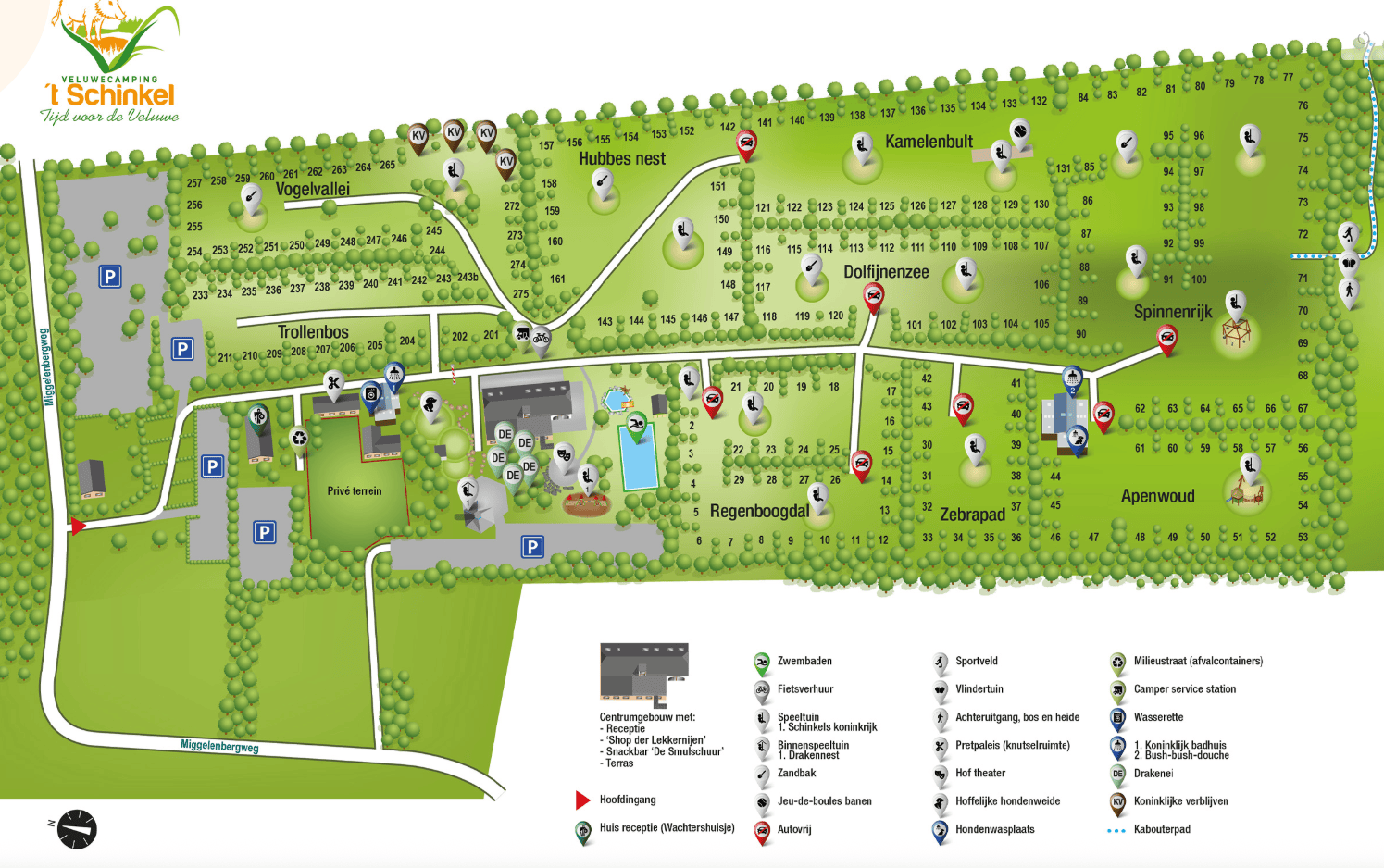 Veluwecamping ’t Schinkel ligt midden in de prachtige natuur van de Veluwe, vlak bij Hoenderloo en op een korte afstand van Nationaal Park de Hoge Veluwe. Deze kindvriendelijke camping staat niet voor niets bekend als het Kinderkoninkrijk: hier vinden jullie ruime kampeerplaatsen van minimaal 100m², mooie cottages, een fantastisch recreatieteam met Koning Lodewijk en de Hofhouding, en unieke overnachtingen in échte DrakenEieren. Je kinderen vermaken zich urenlang in de ondergrondse binnenspeeltuin Het Drakennest, je zwemt samen in de Hofvijver met waterglijbaan, en na een actieve dag schuif je aan voor een hapje bij snackbar De Smulschuur.